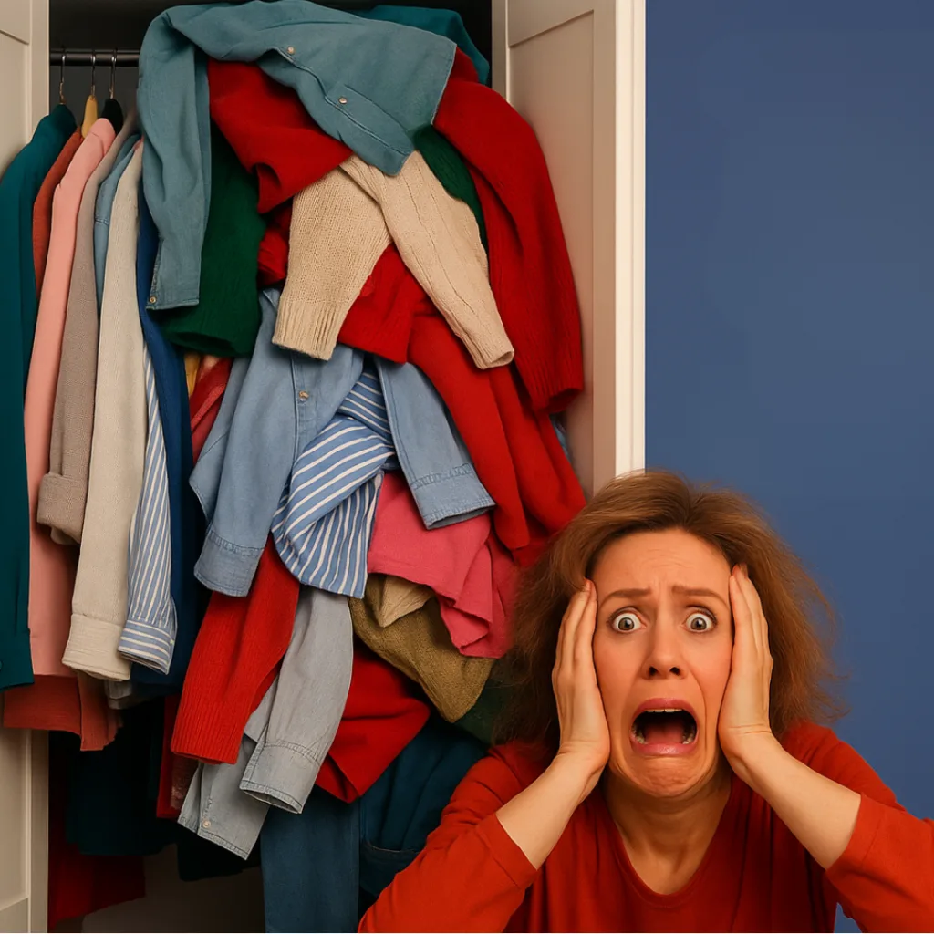 Frente al clóset, sin saber qué llevar.